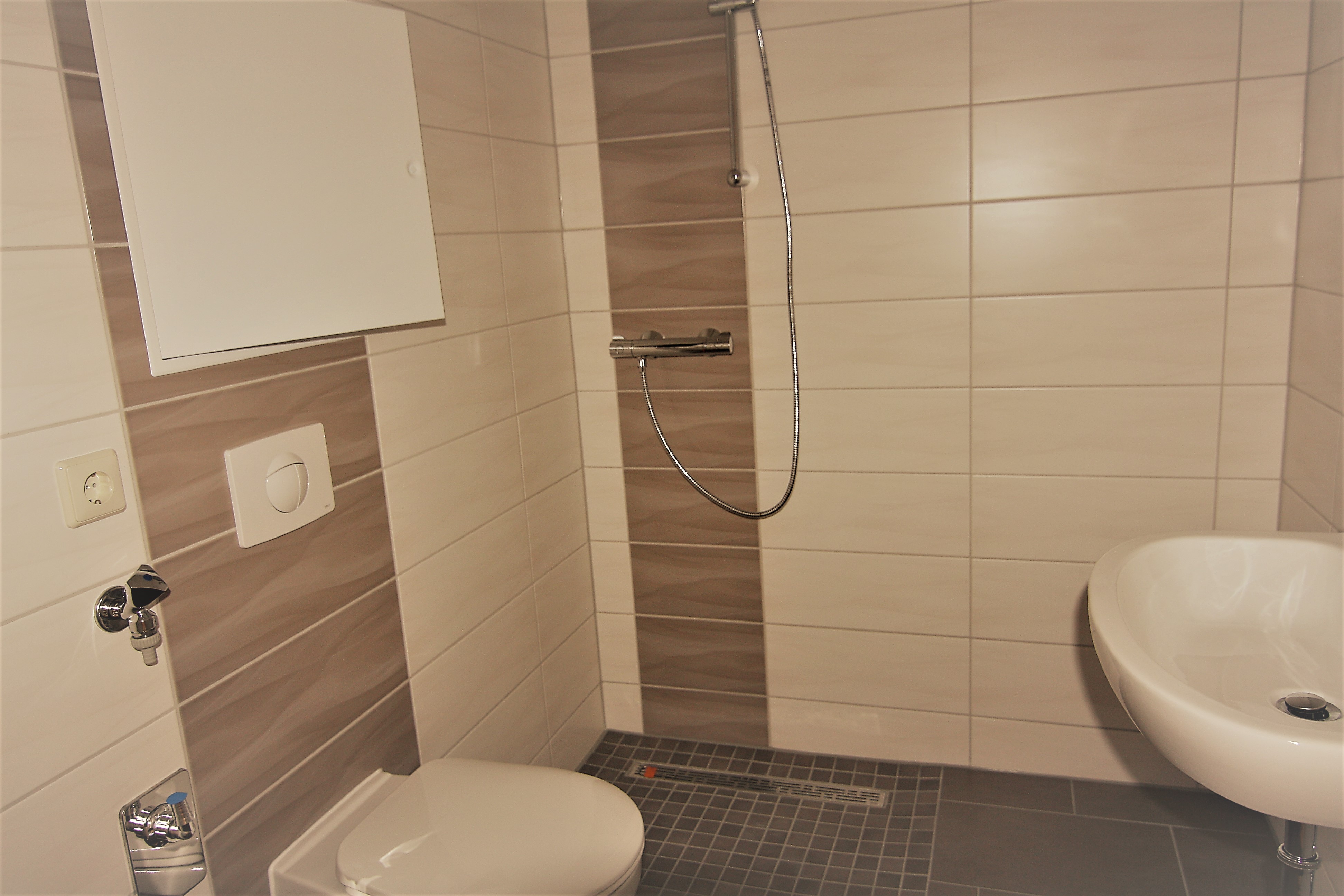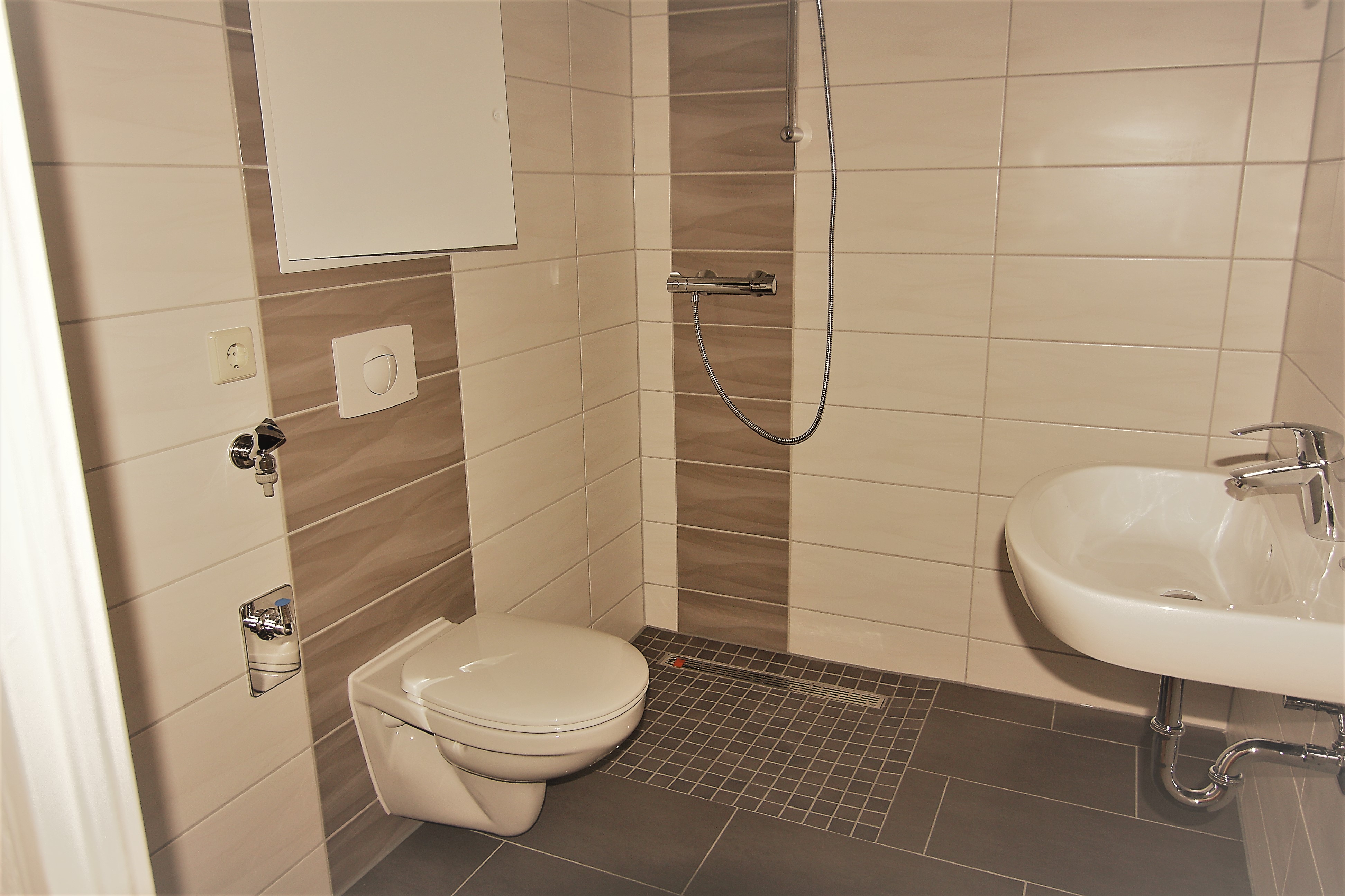 -Modernes Bad mit ebener Dusche und WM-Anschluss